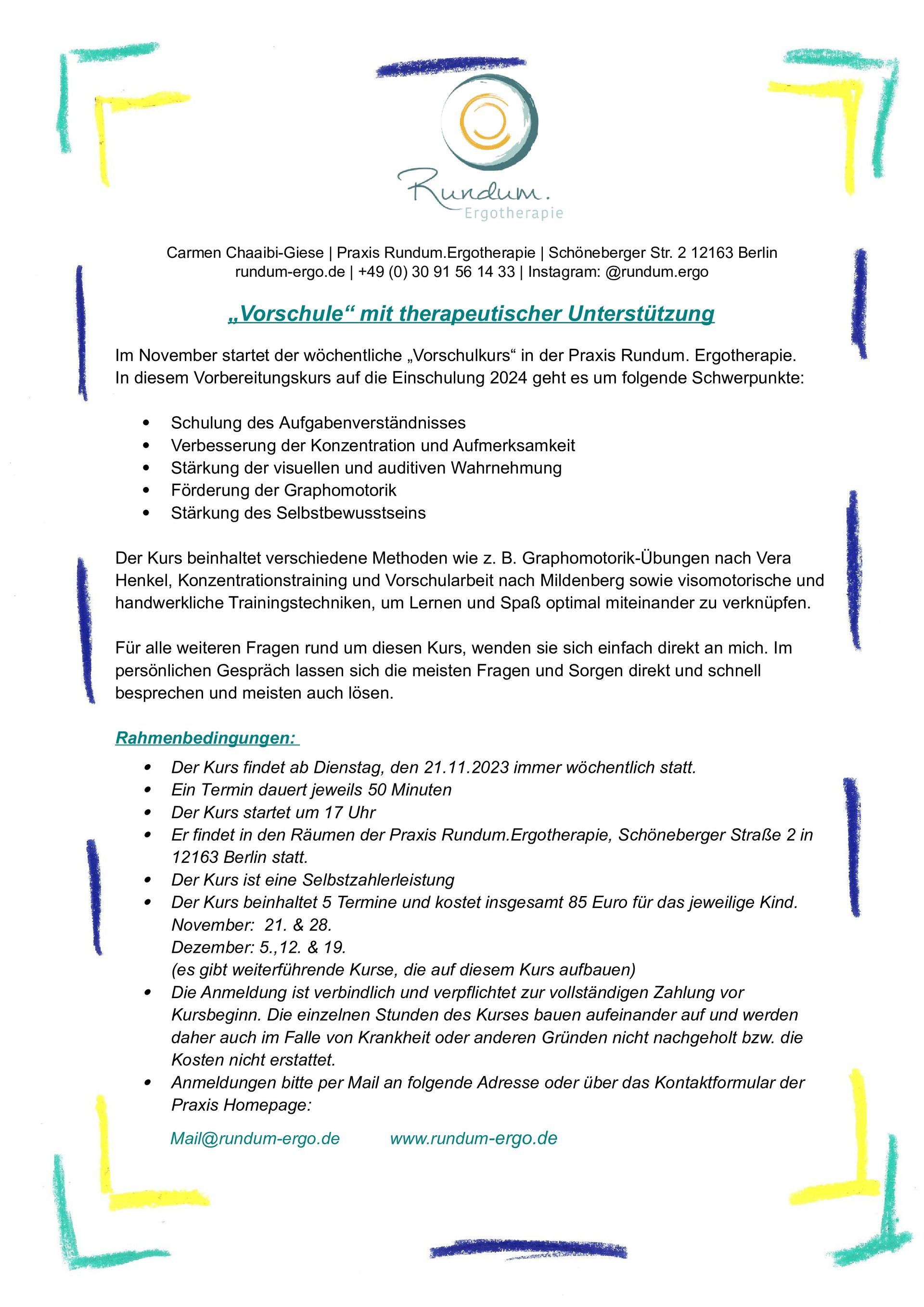 Zielgruppe: Kinder, die im Jahr 2024 eingeschult werden und Vorkenntnisse haben oder den ersten Teil des Vorschulkurses besucht haben